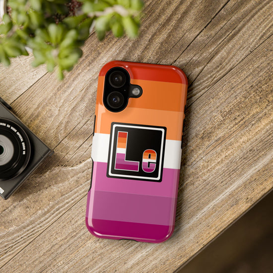 Show off your pride and protect your phone with our Lesbian Pride Impact-Resistant Case! Featuring the bold, beautiful stripes of the lesbian flag with the “LE” element design from our Elements of Pride collection, this case is a perfect blend of durability and self-expression.