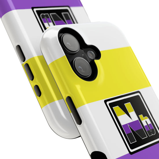 Show your pride and protect your tech with our bold Non-Binary Pride Impact-Resistant Phone Case! Featuring the vibrant yellow, white, purple, and black stripes of the non-binary flag, this case is a celebration of identity, visibility, and individuality. The periodic table–inspired "NB" design adds a unique, geek-chic touch that’s perfect for expressing yourself everywhere you go.