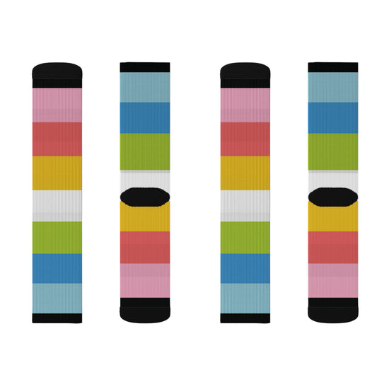 Celebrate every step you take with these Queer Pride crew socks! Featuring the bold blue, pink, and white stripes of the Queer pride flag, these cozy socks are a perfect way to show visibility and support. Whether you’re heading to a Pride parade, hanging at home, or gifting a little love to your chosen family, these socks are made to spread comfort and pride.